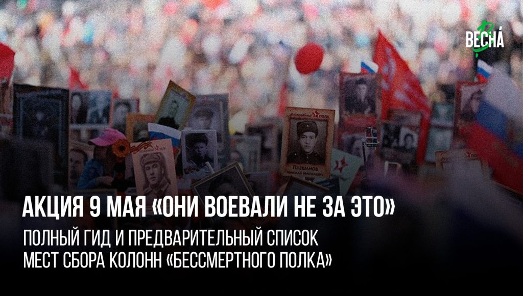Призываем вас выходить на «Бессмертный полк» в вашем городе. В этом году шествия пройдут без ковидных ограничений, в очном формате. Берите с собой фото ваших ветеранов с лозунгом «воевал/а не за это» поверх. Обычно это легко, так как шествия открытые.